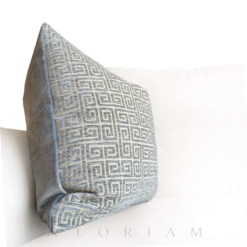 Robert Allen Greek Key Geometric Cloudy Blue-Green Gray Velvet Pillow Cover