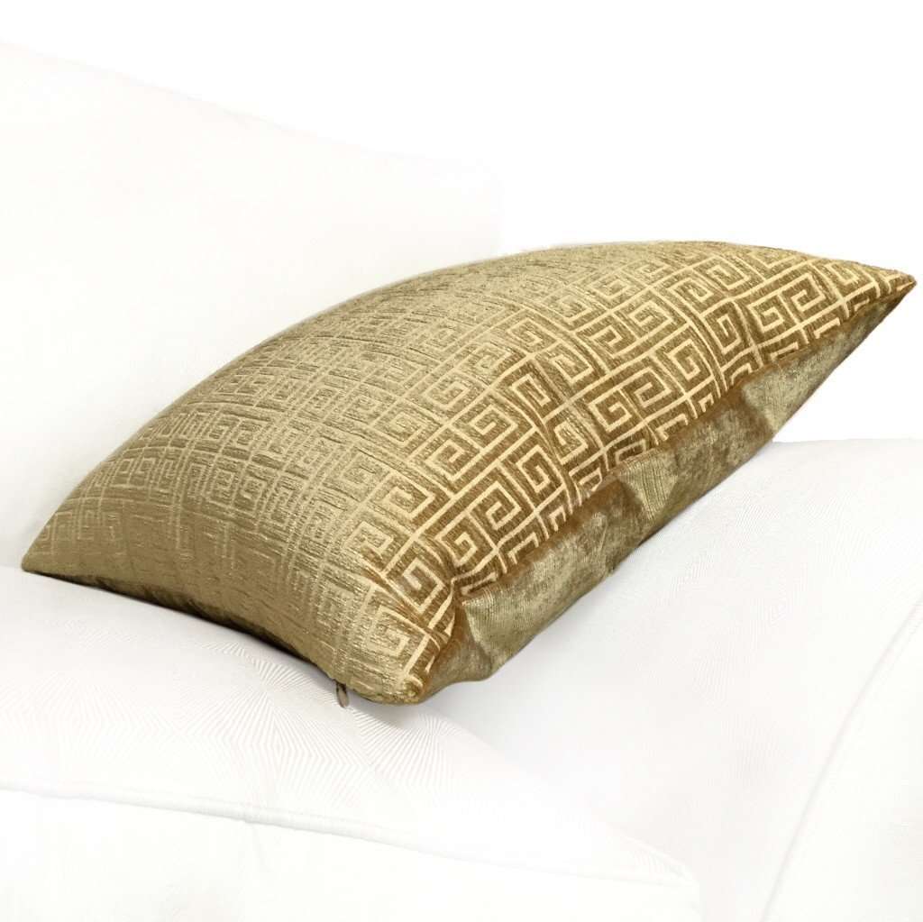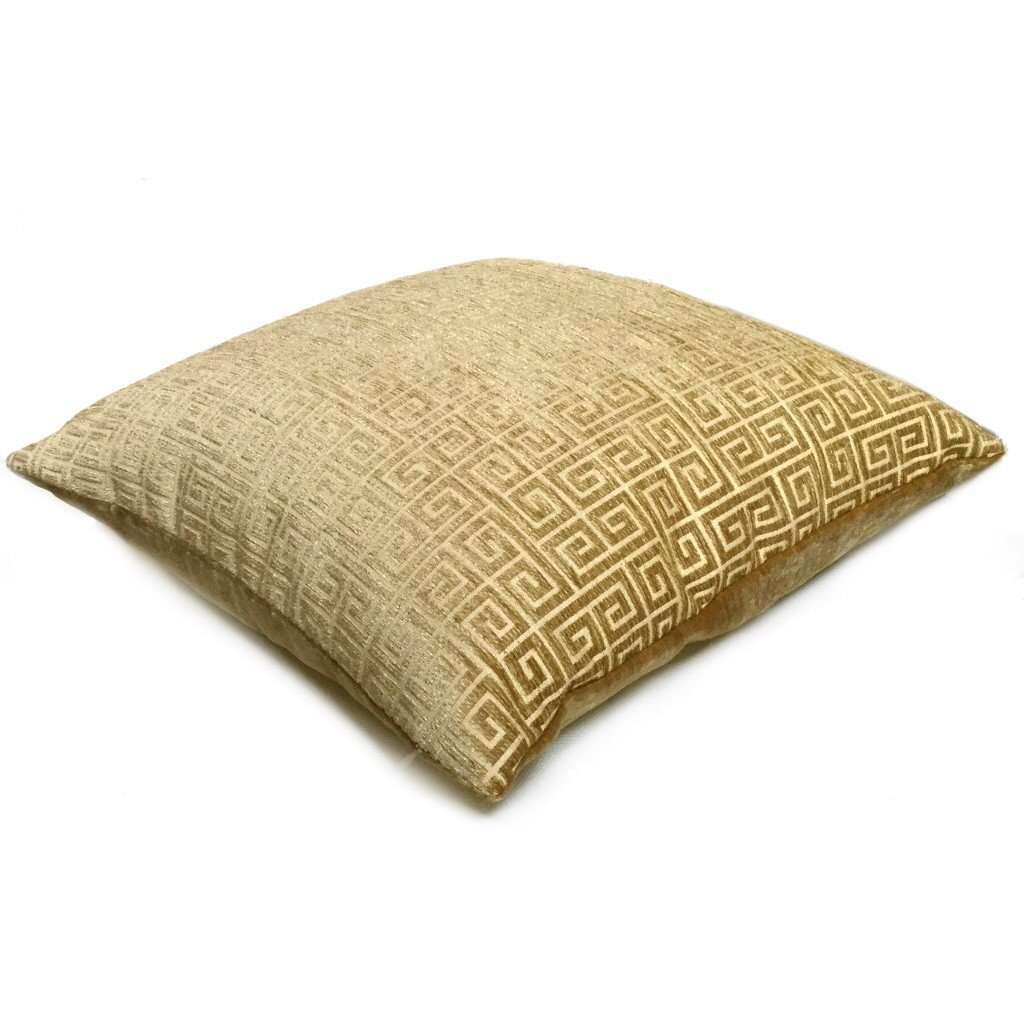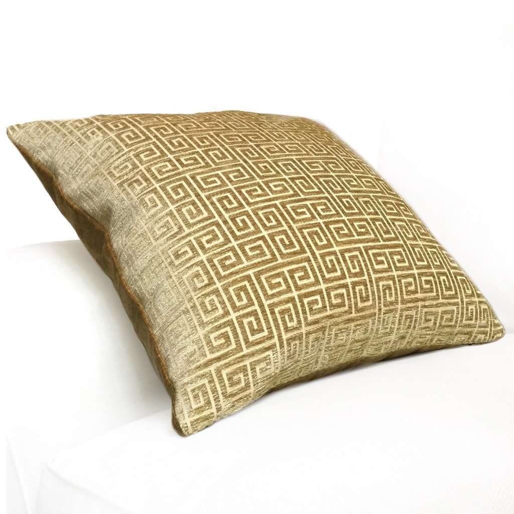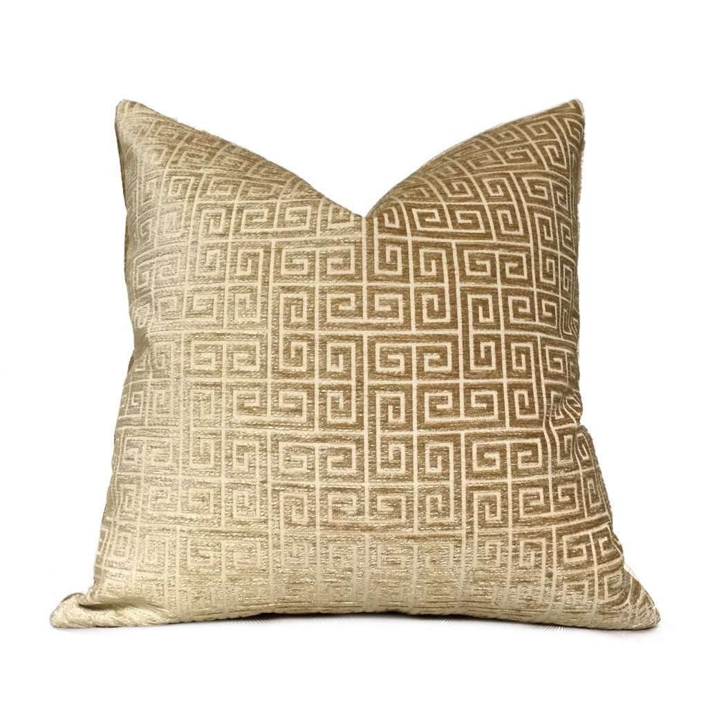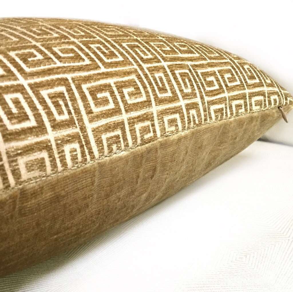 Robert Allen Plush Greek Keys Gold Sand Beige Velvet Chenille Pillow Cover