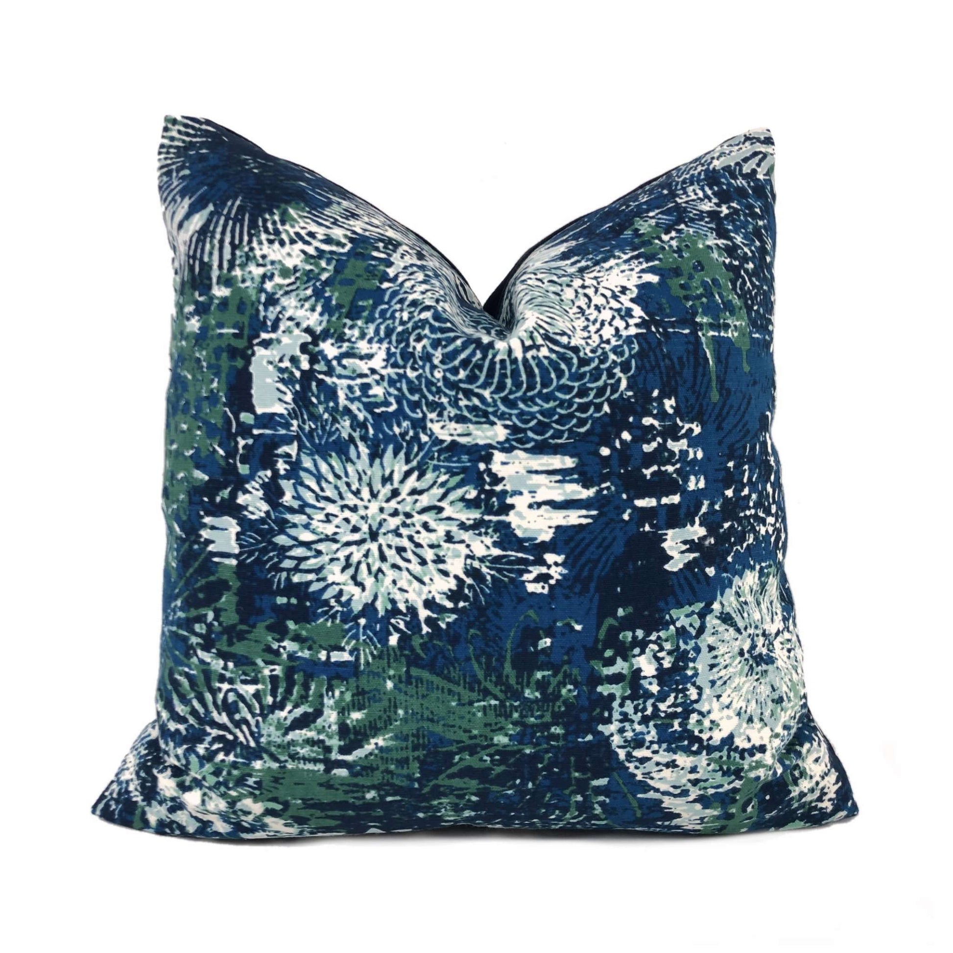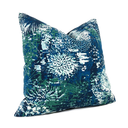 Robert Allen Modern Green Blue Teal White Floral Pillow Cover