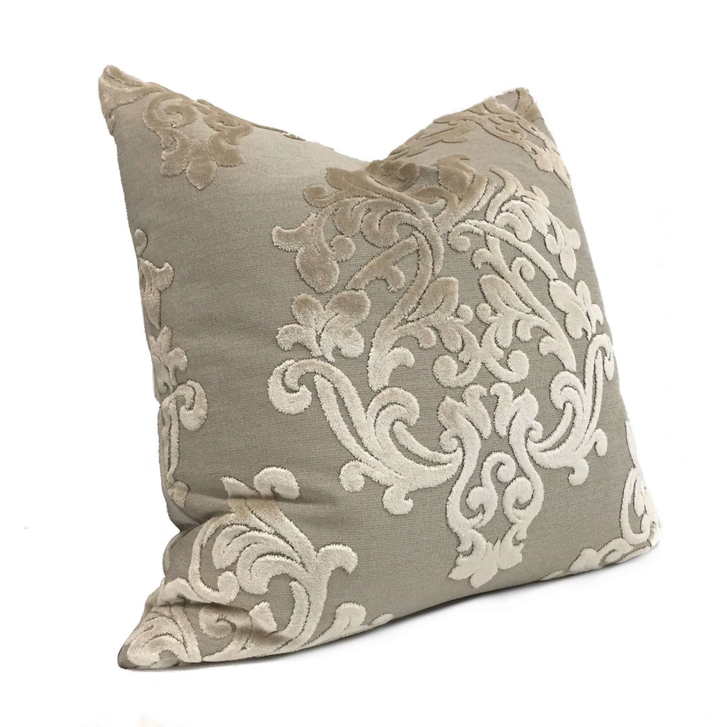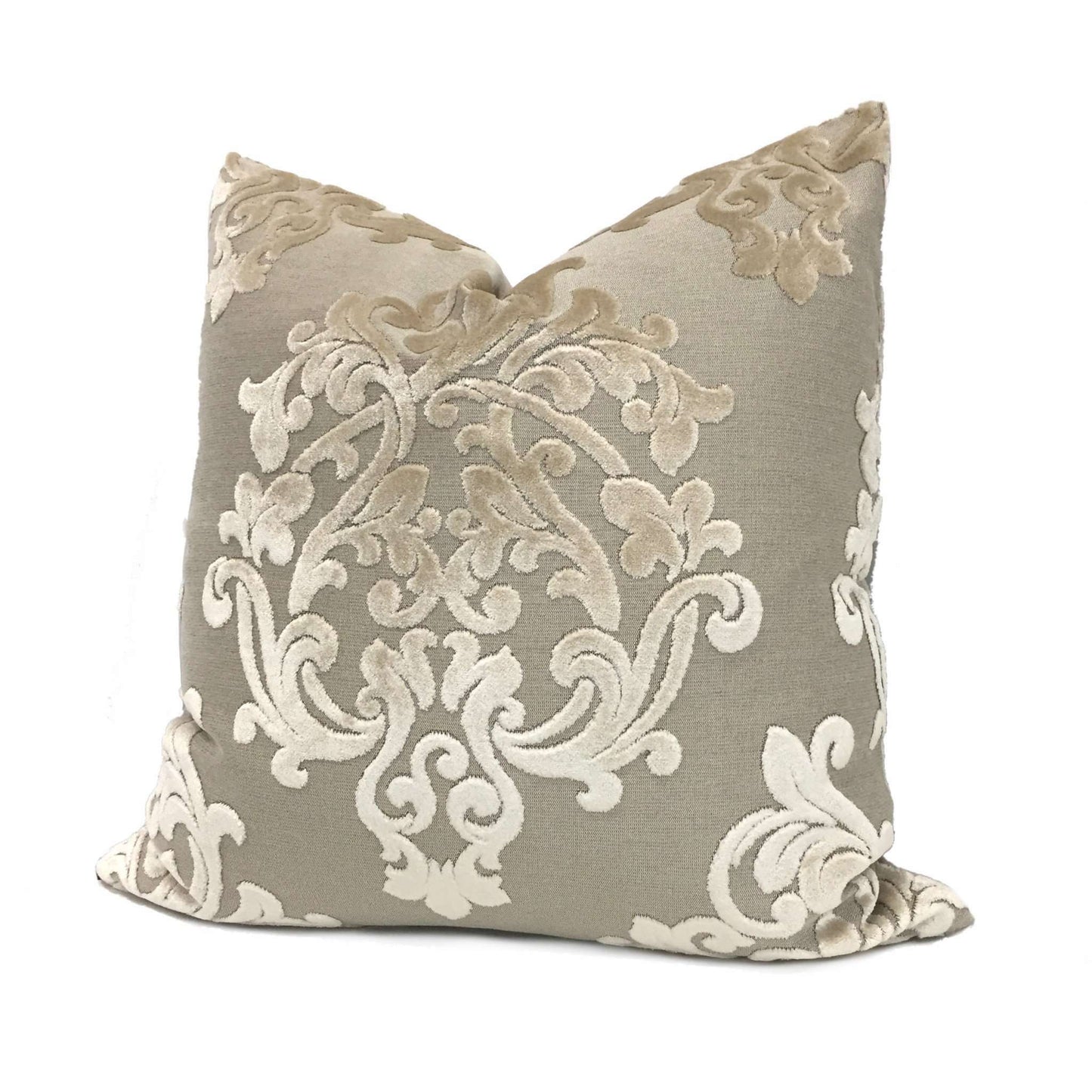 (CLEARANCE) Robert Allen Royal Beauty Damask Medallion Beige Cream Cut Velvet Pillow Cover