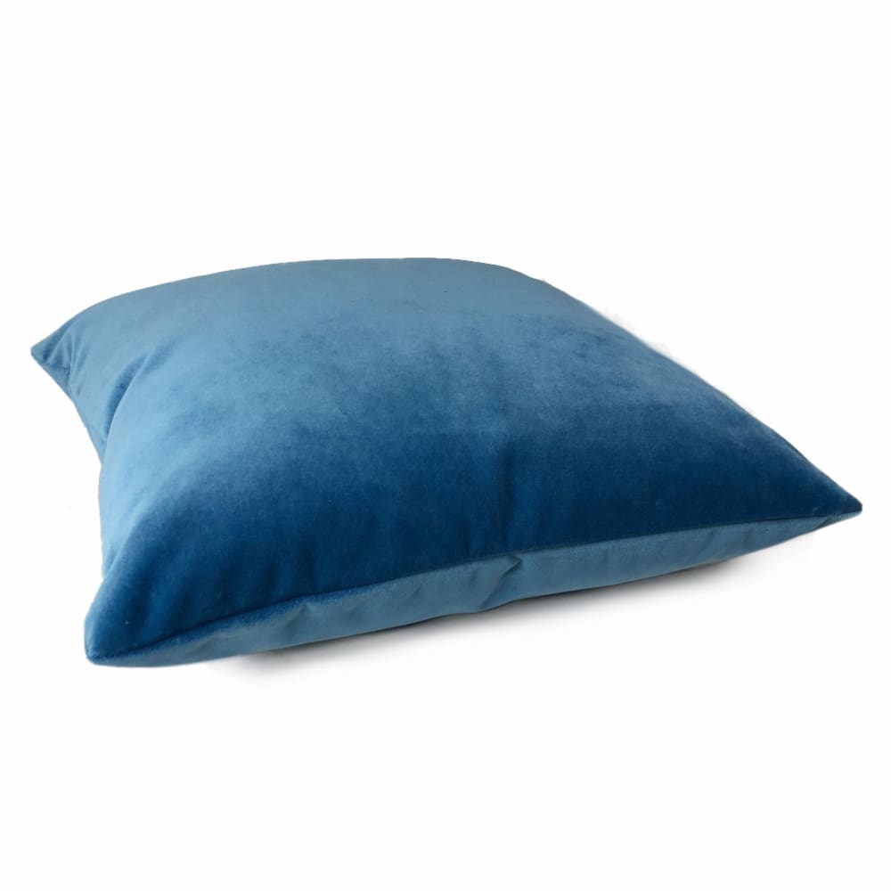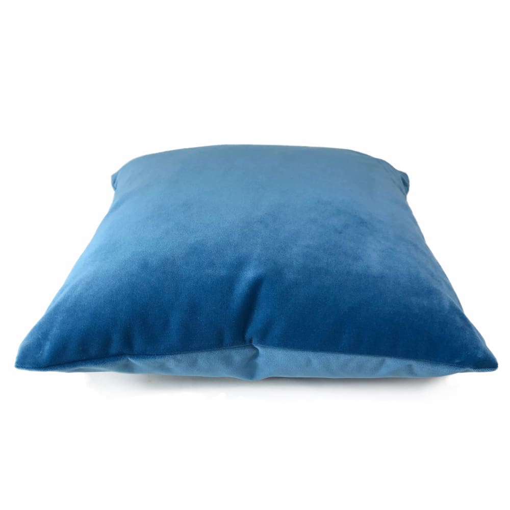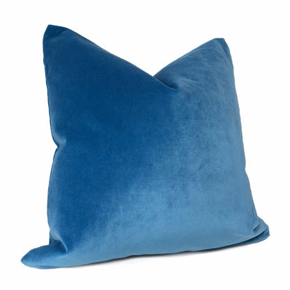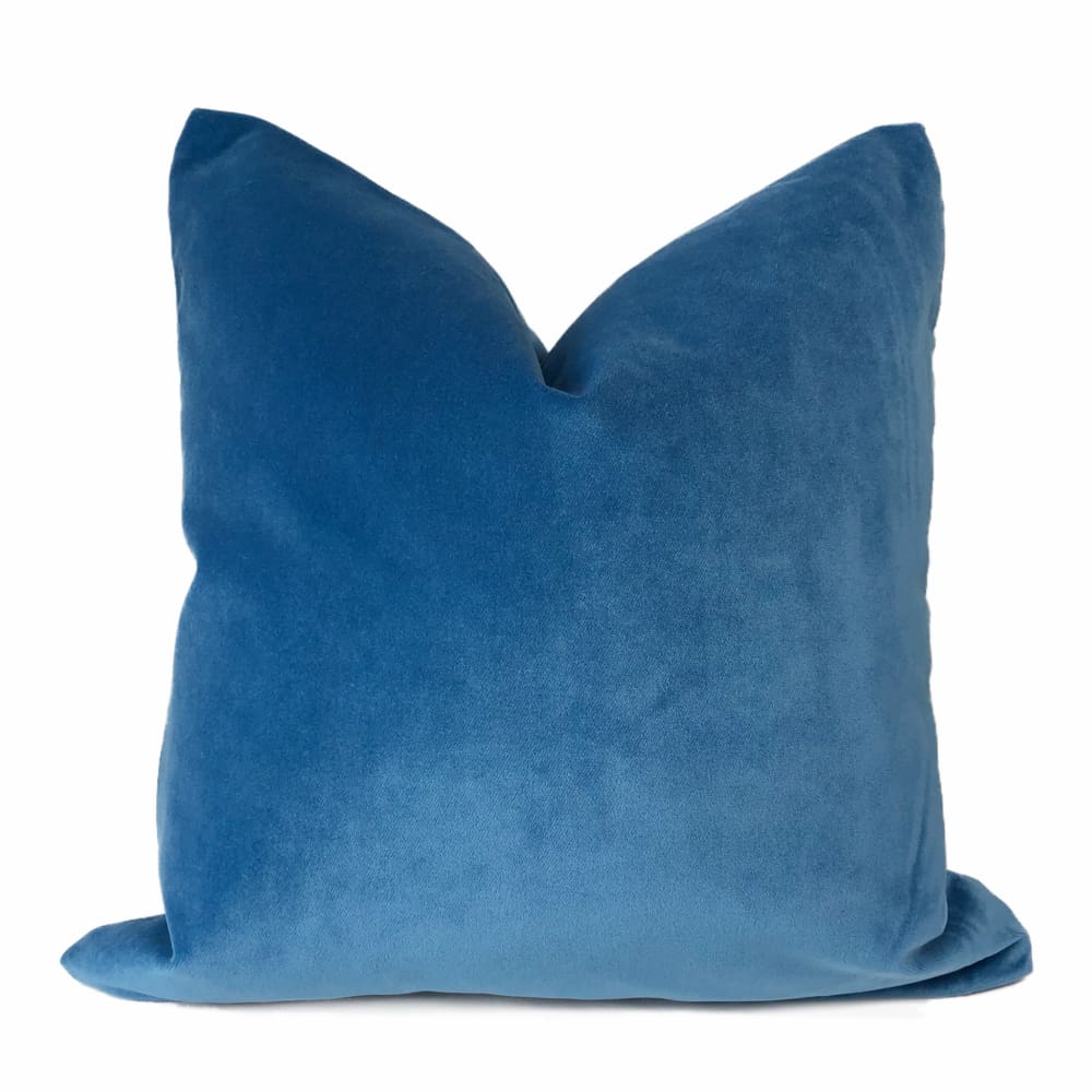 This cerulean blue velvet pillow cover features a gorgeous blue shade like the sky on a sunny summer day. This durable polyester velvet fabric woven by Robert Allen has a rating of 50,000 double rubs on the abrasion scale.