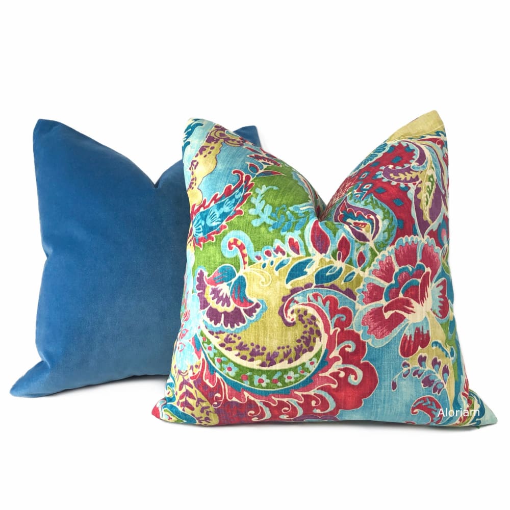Robert Allen Royal Comfort Cerulean Blue Velvet Pillow Cover