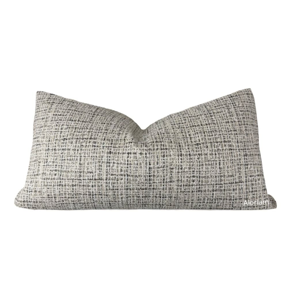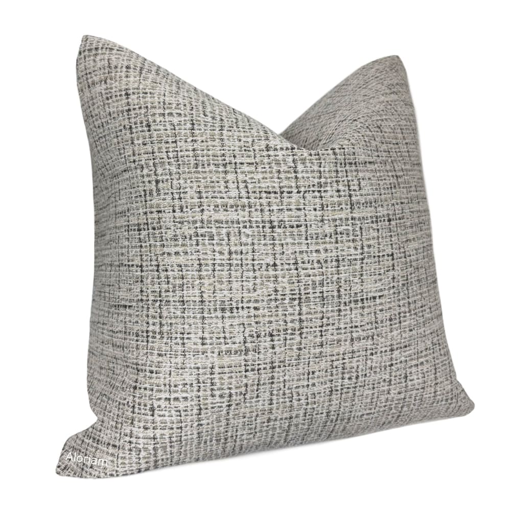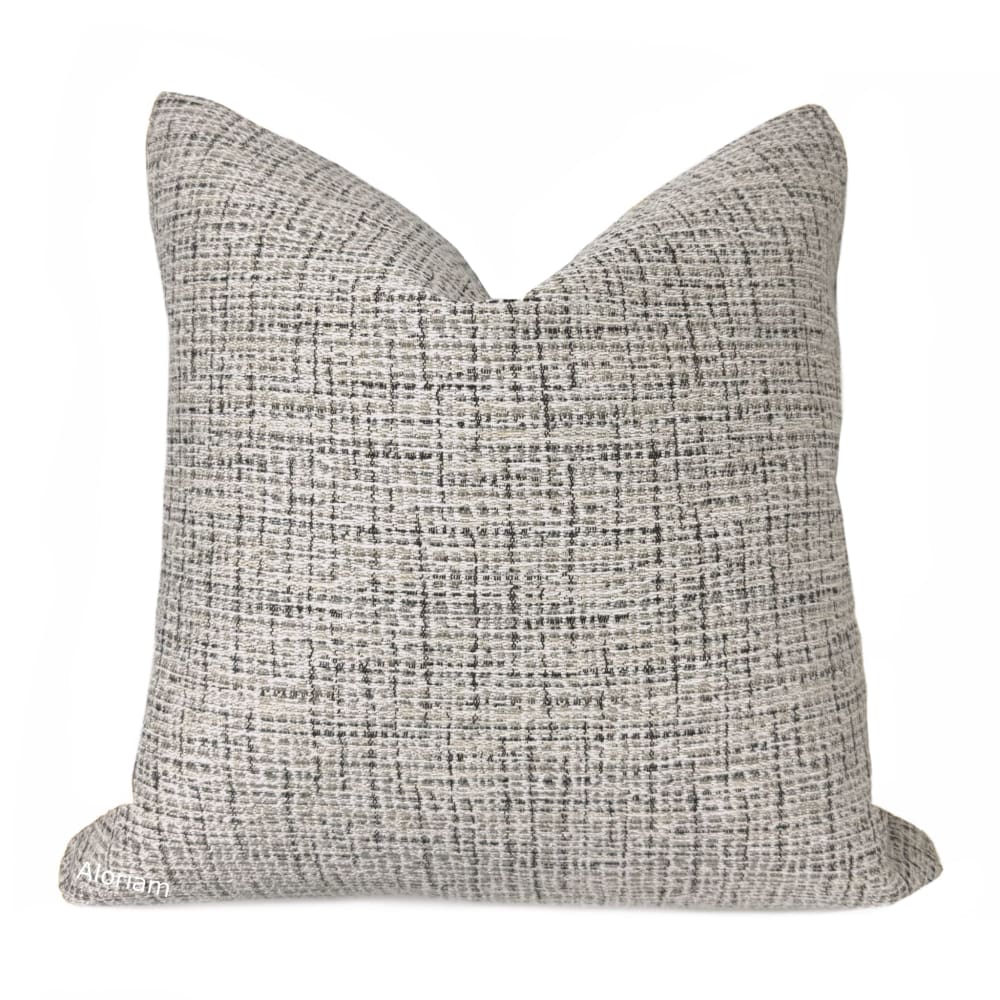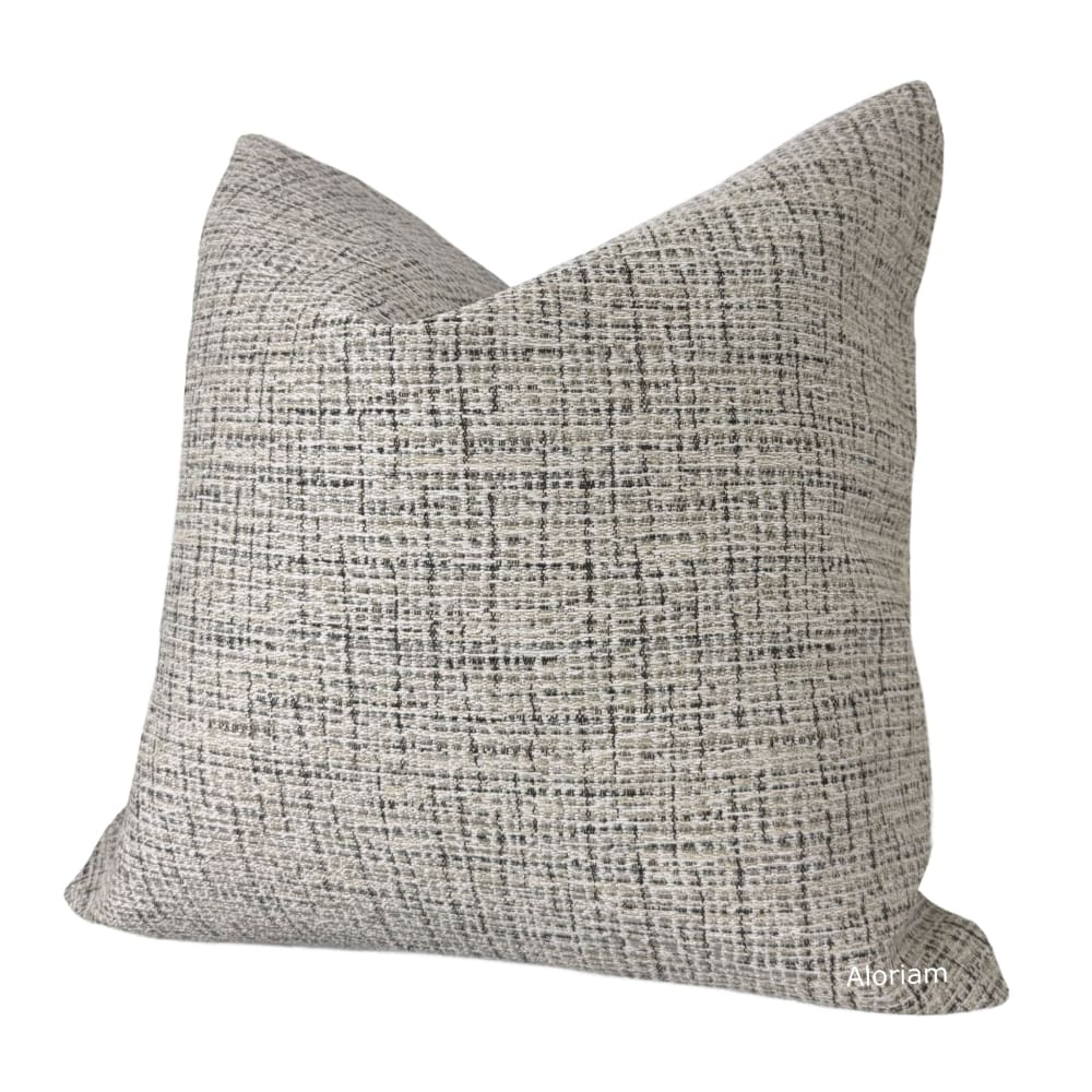 The Robertson pillow cover features a fabulous tweed style pattern woven in a mix of gray, taupe and off-white.