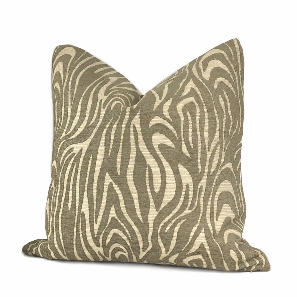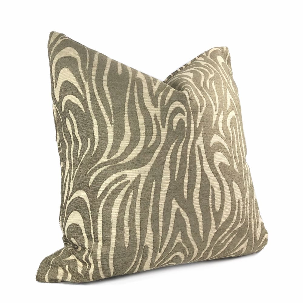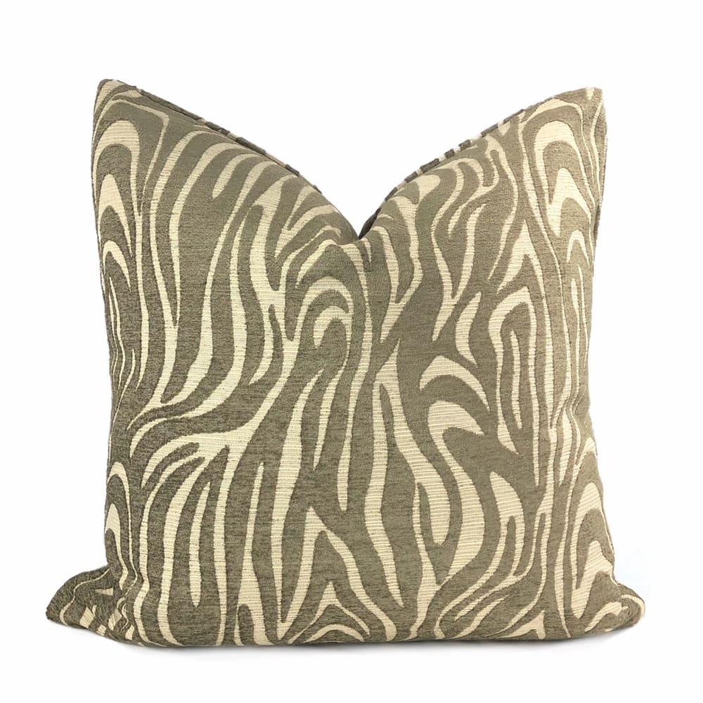 Saber Brown Beige Animal Stripe Chenille Pillow Cover