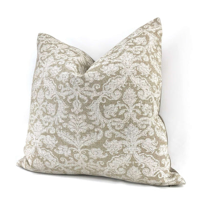 Savannah Chalk White Beige Damask Floral Pillow Cover (Lacefield Designs Fabric)