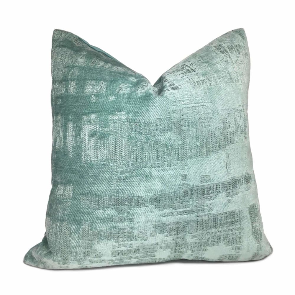 Seafoam Green Abstract Patina Chenille Texture Pillow Cover