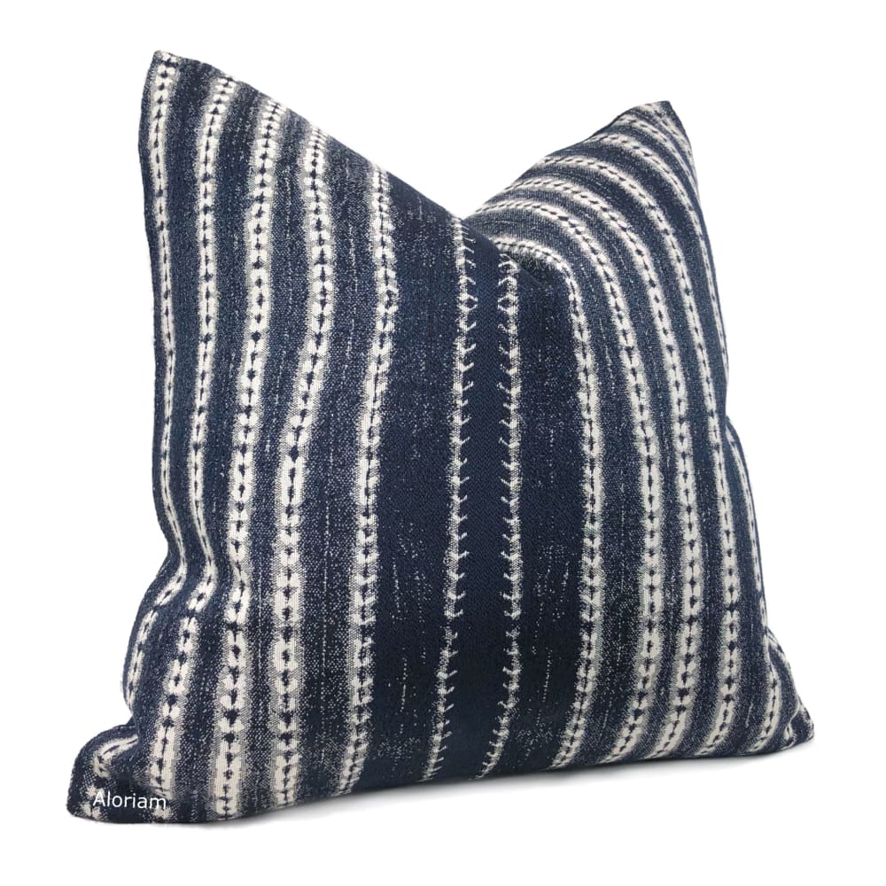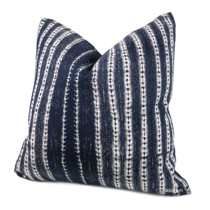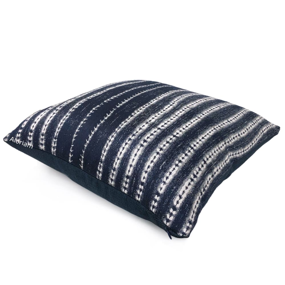 (CLEARANCE) Sebu Dark Navy Blue White Ikat Stripe Pillow Cover