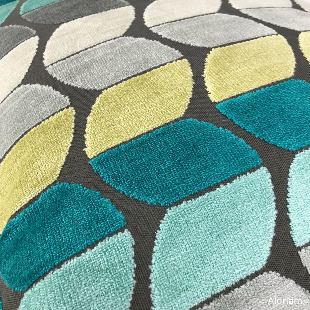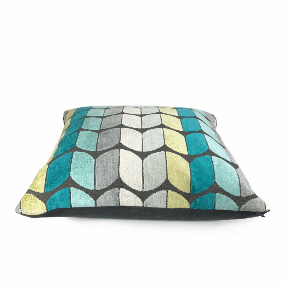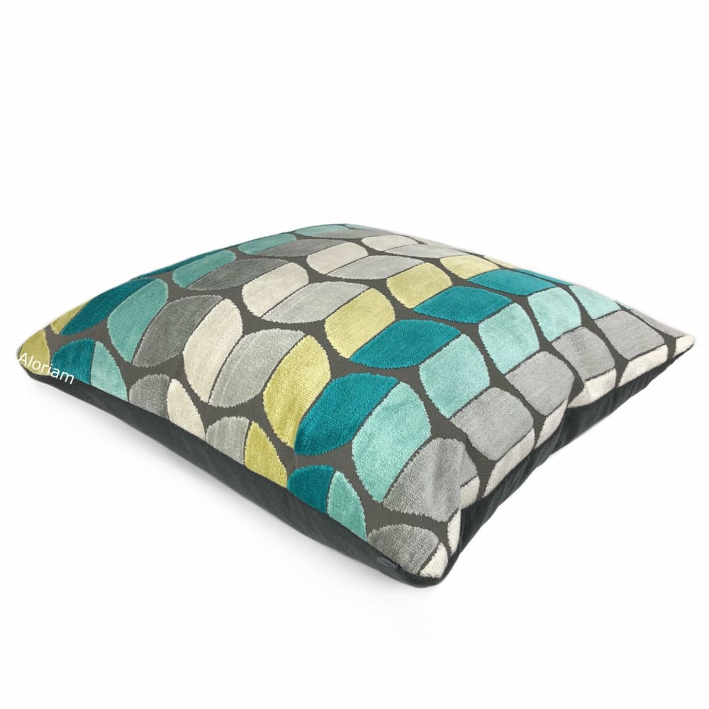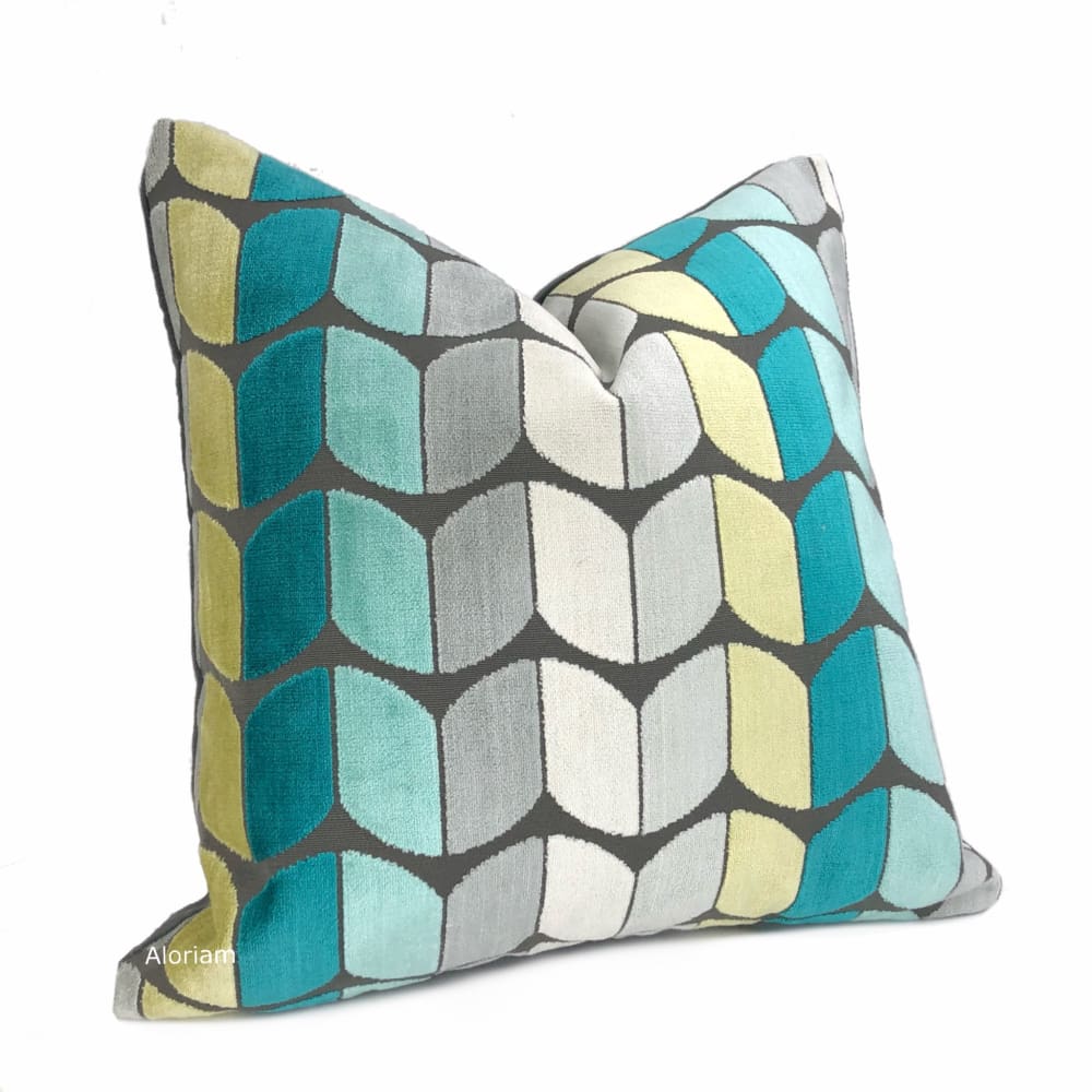 Sheridan Aqua Teal Green Yellow Gray Velvet Pillow Cover (FROM IN STOCK FABRIC)