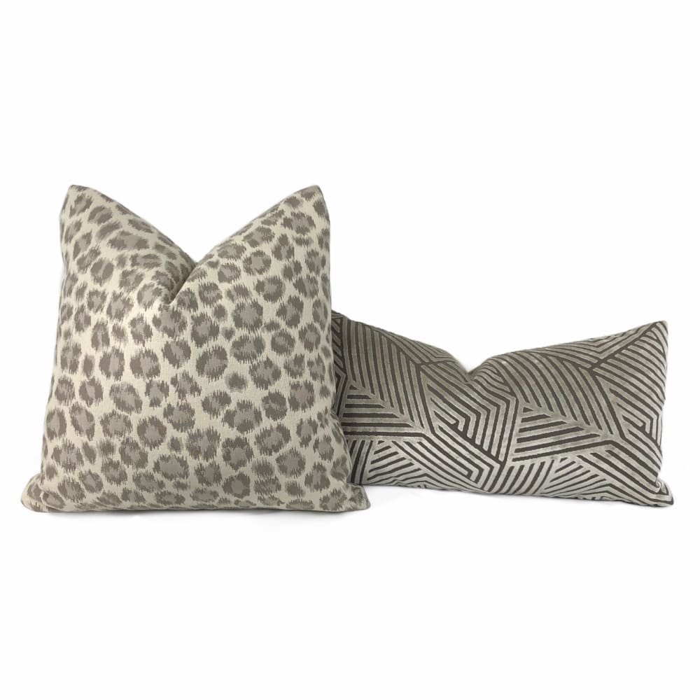 Sunbrella Taupe Brown Cream Leopard Spot Pillow Cover (Performance fabric)