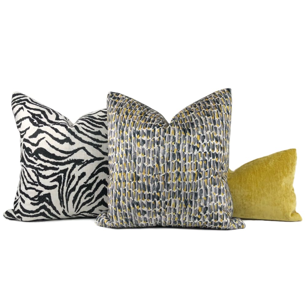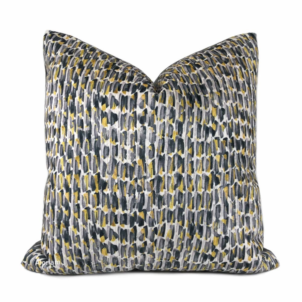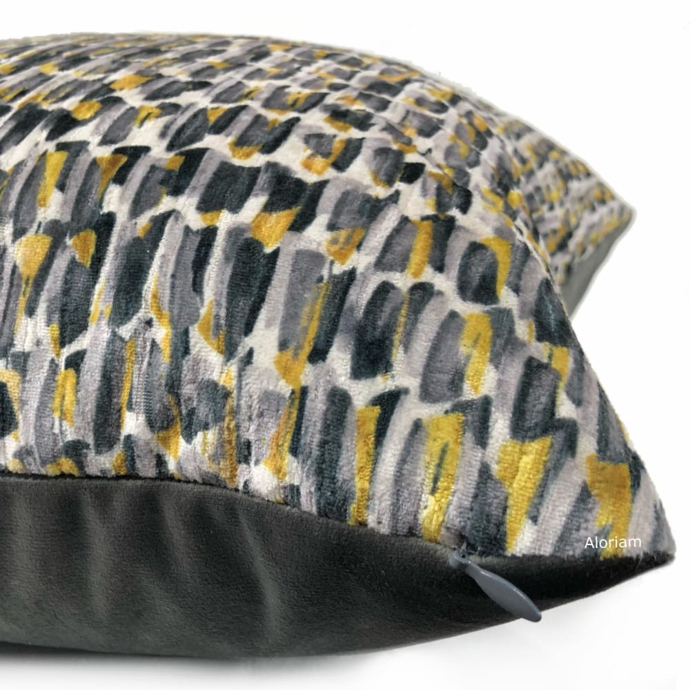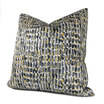 (CLEARANCE) Symon Gray Yellow Abstract Paint Dabs Velvet Pillow Cover