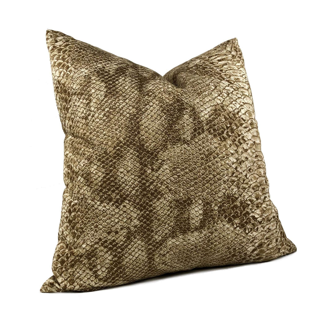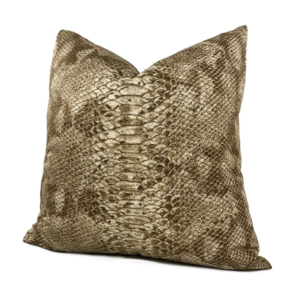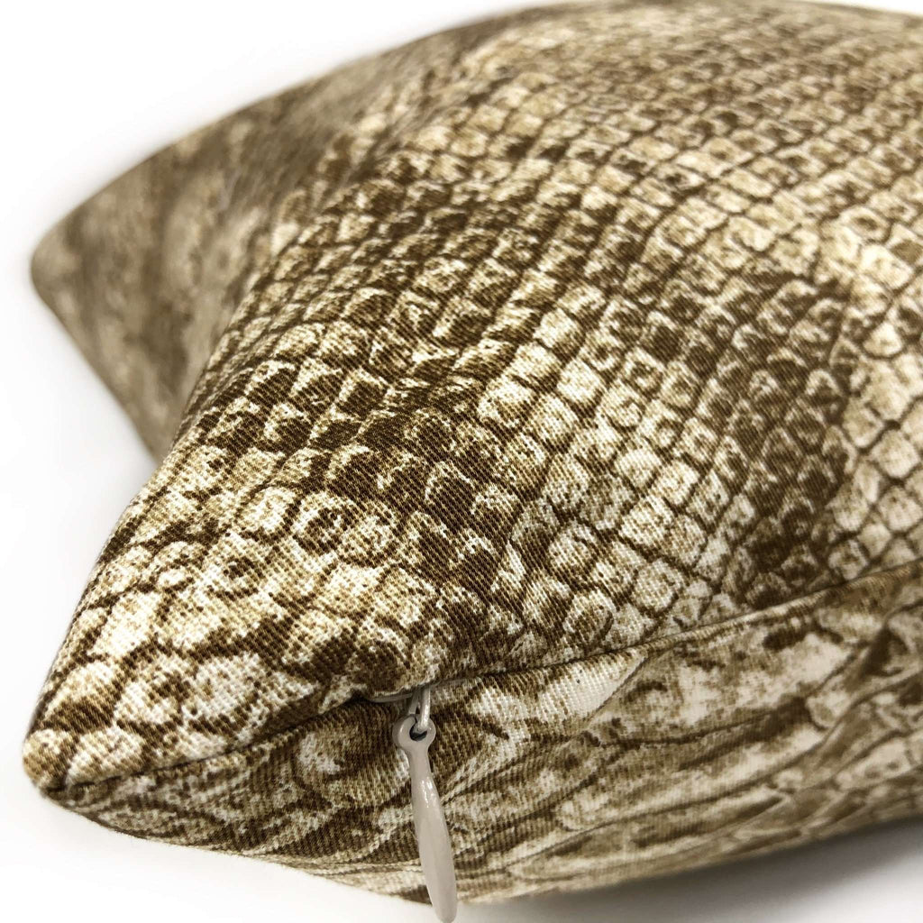 (CLEARANCE) Tan Brown Faux Snakeskin Reptile Cotton Print Pillow Cover