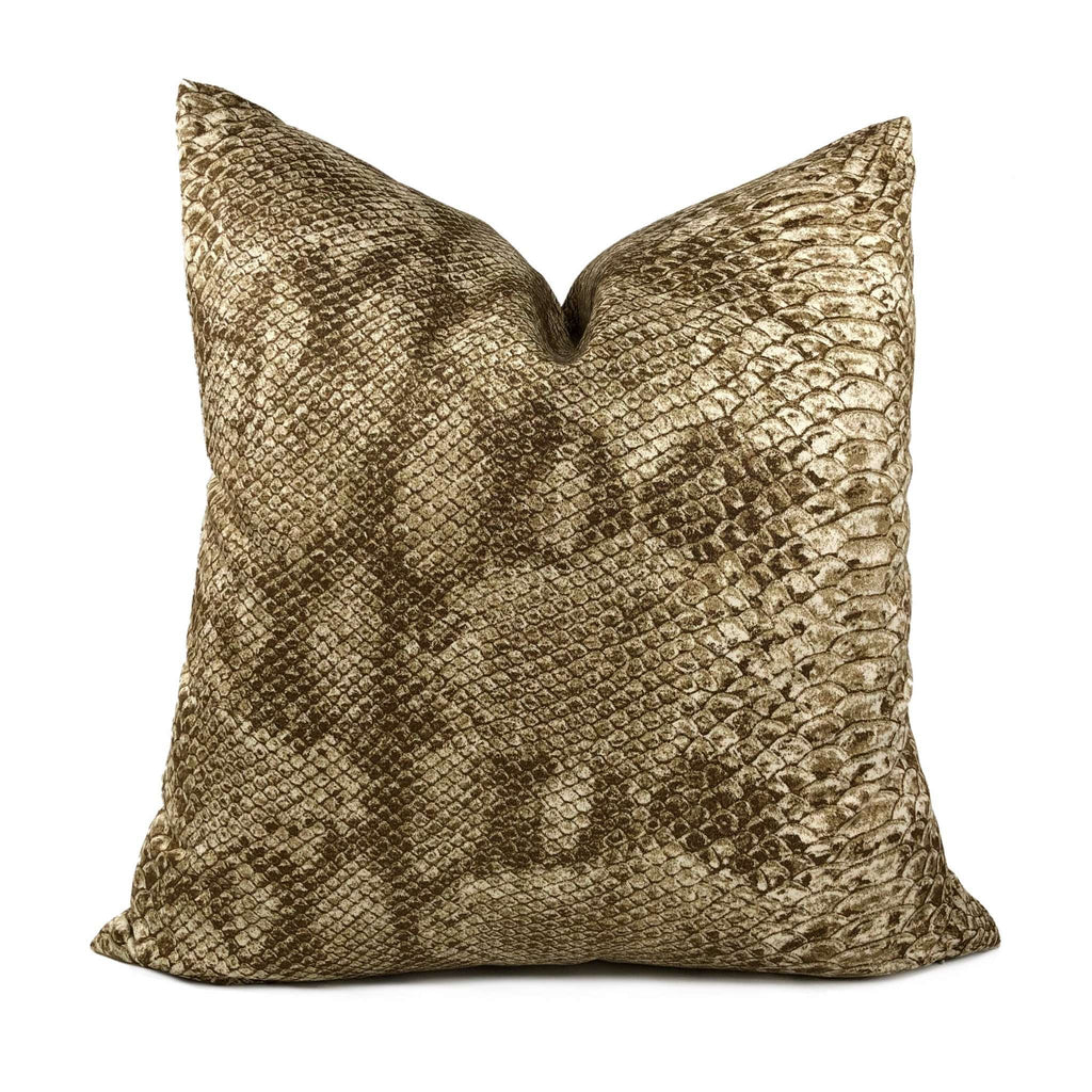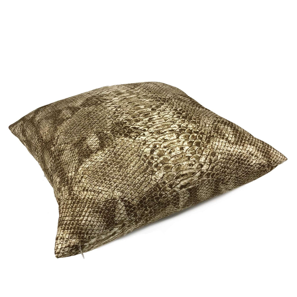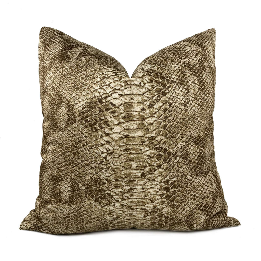 (CLEARANCE) Tan Brown Faux Snakeskin Reptile Cotton Print Pillow Cover
