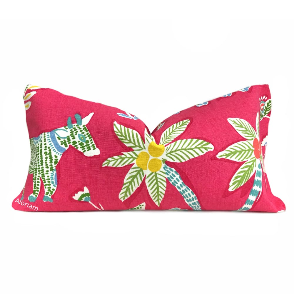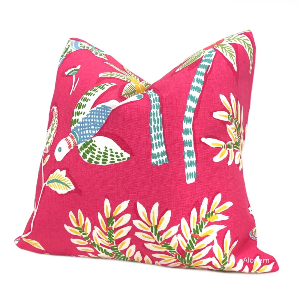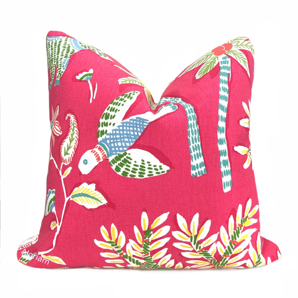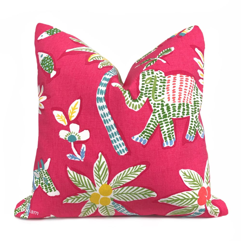 Thibaut Goa Hot Pink Elephant Bird Print Pillow Cover (Fabric by the Yard also available)