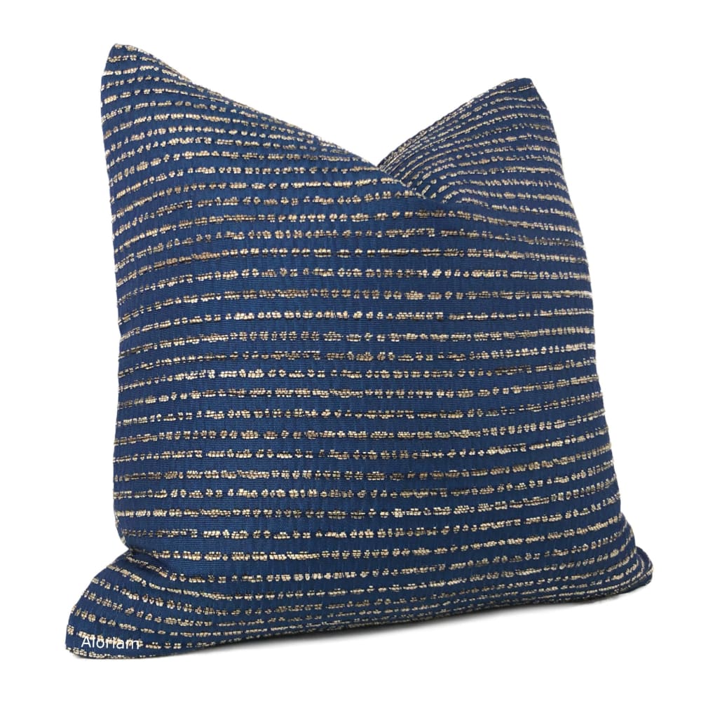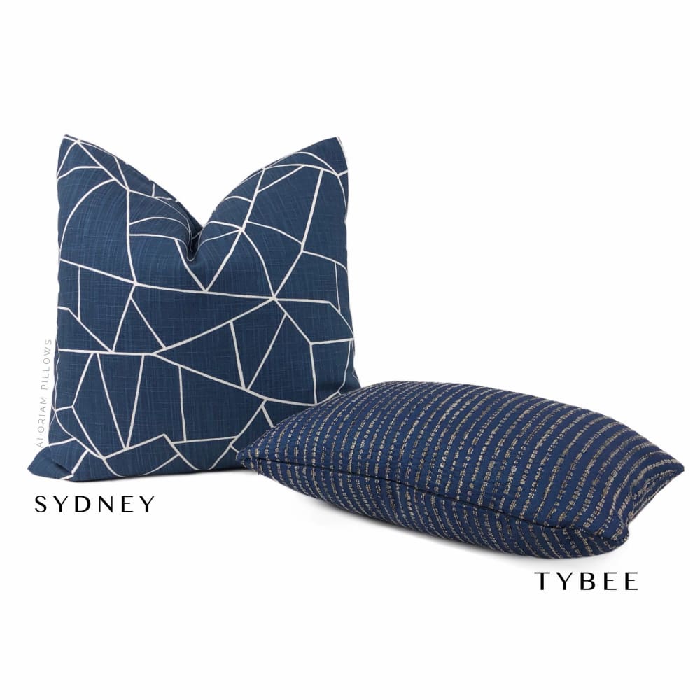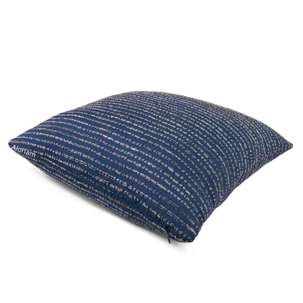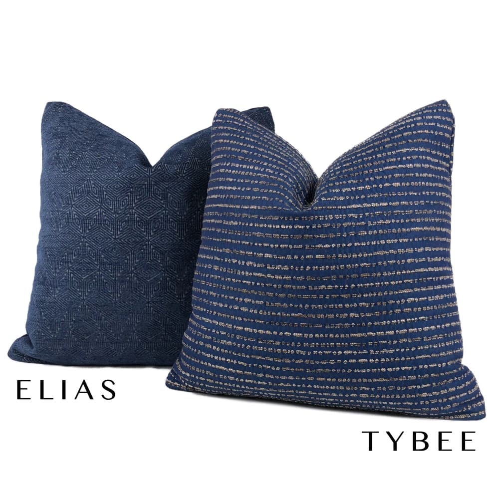 The Tybee pillow cover features a textured striped pattern woven against an ocean blue background.