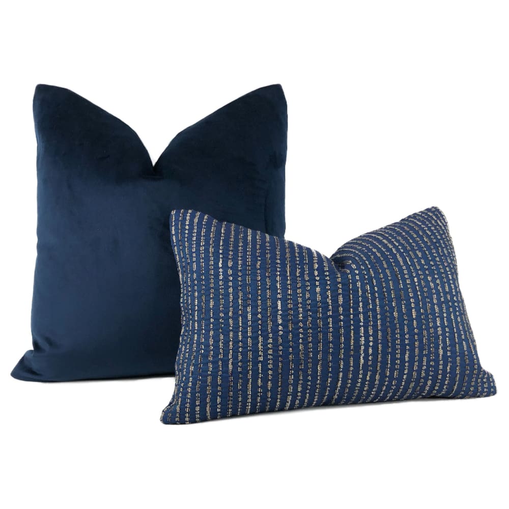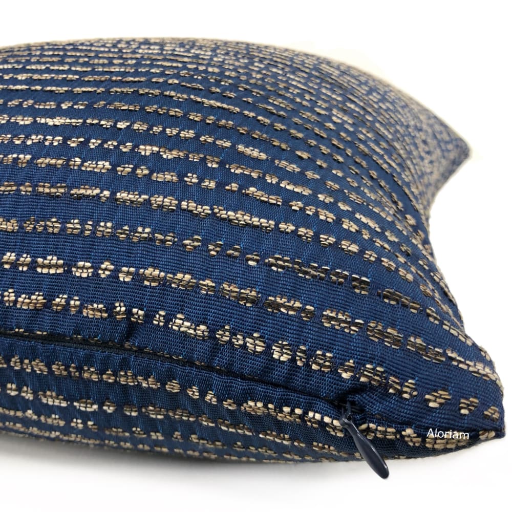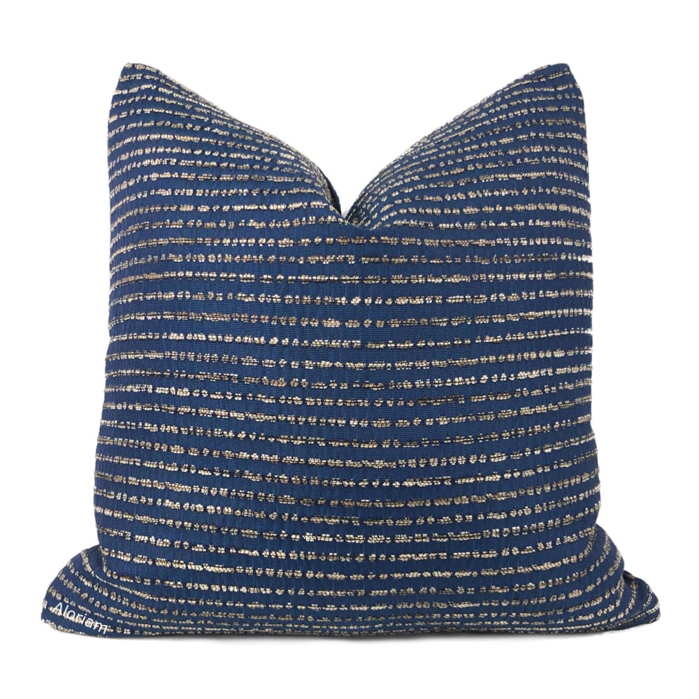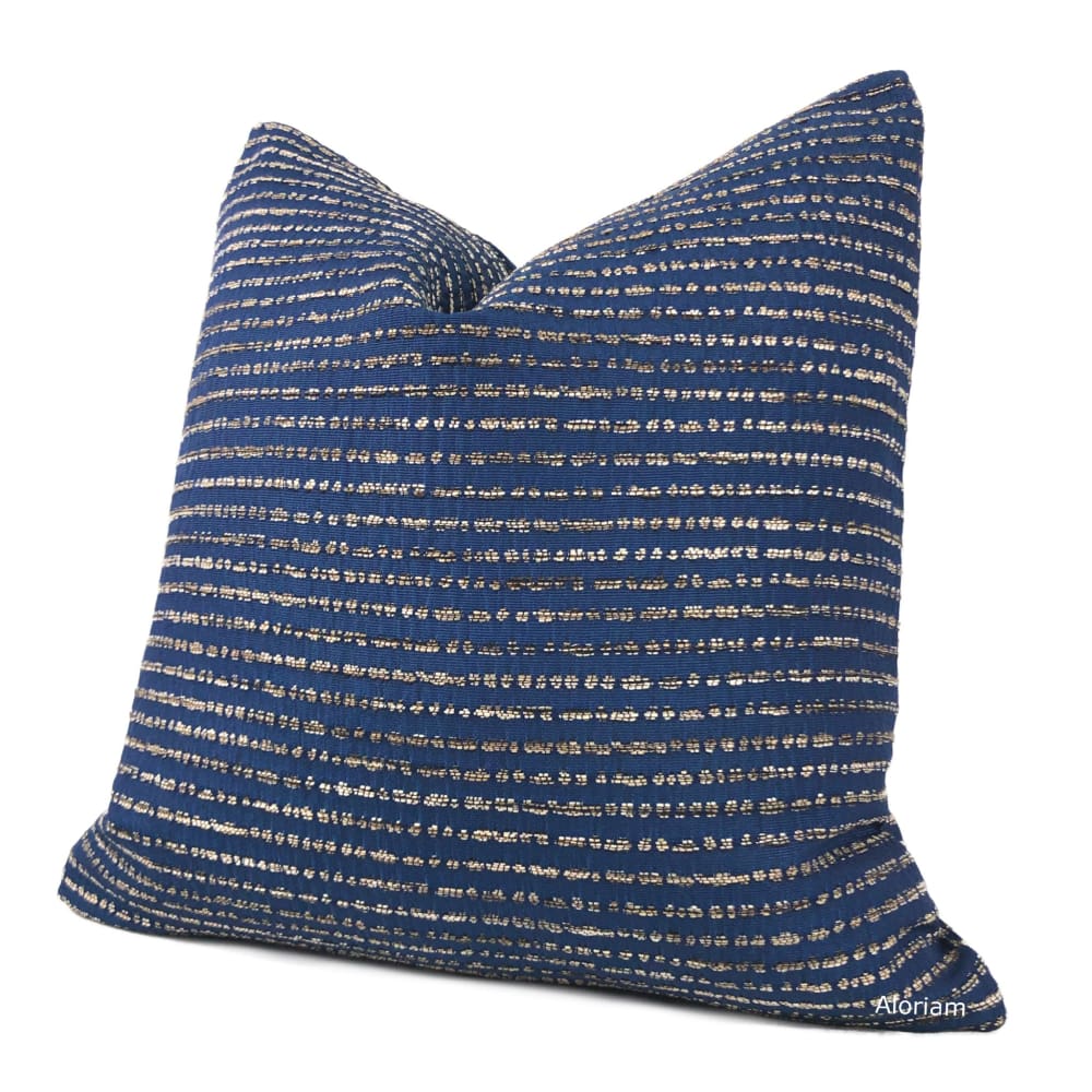 The Tybee pillow cover features a textured striped pattern woven against an ocean blue background.