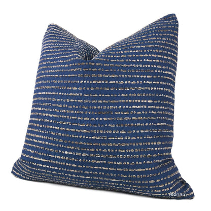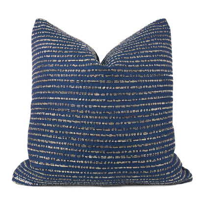 Tybee Ocean Blue Beige Brown Textured Stripes Pillow Cover (Fabric by the Yard available)