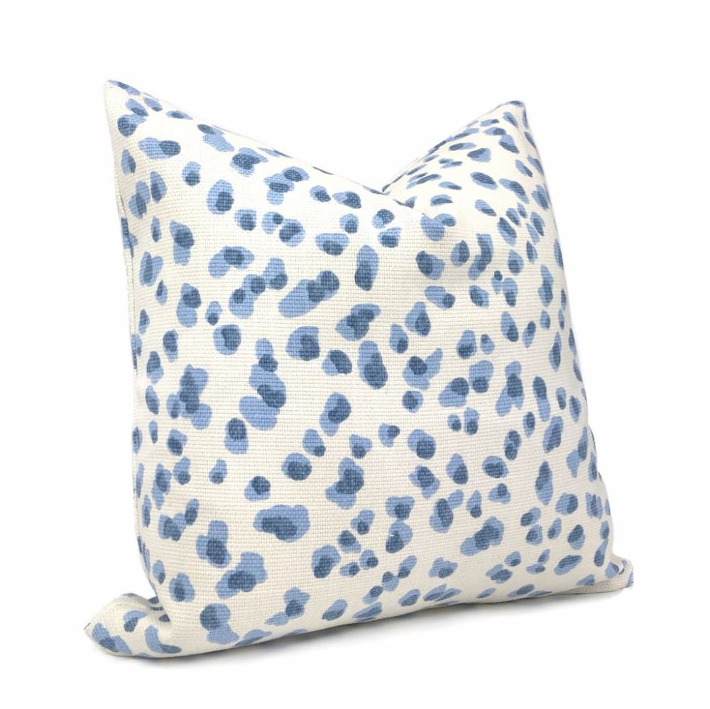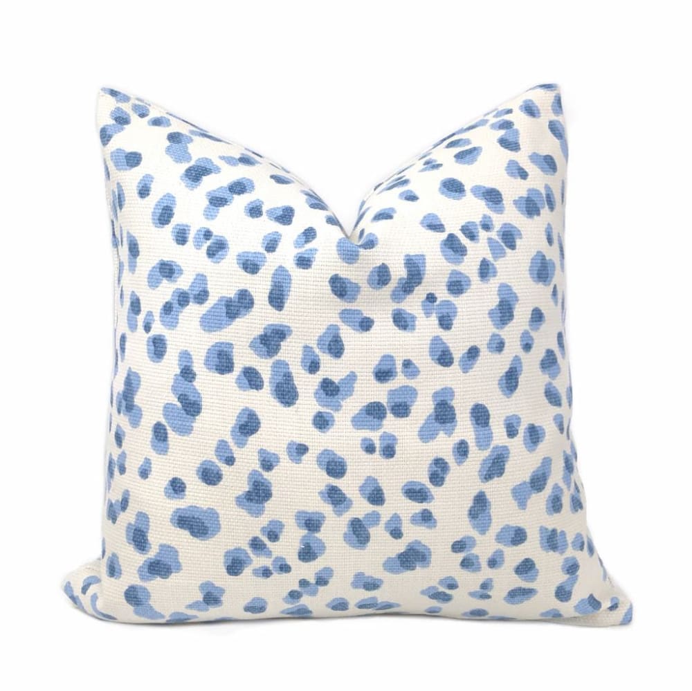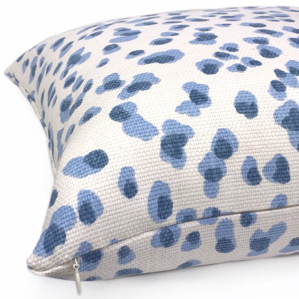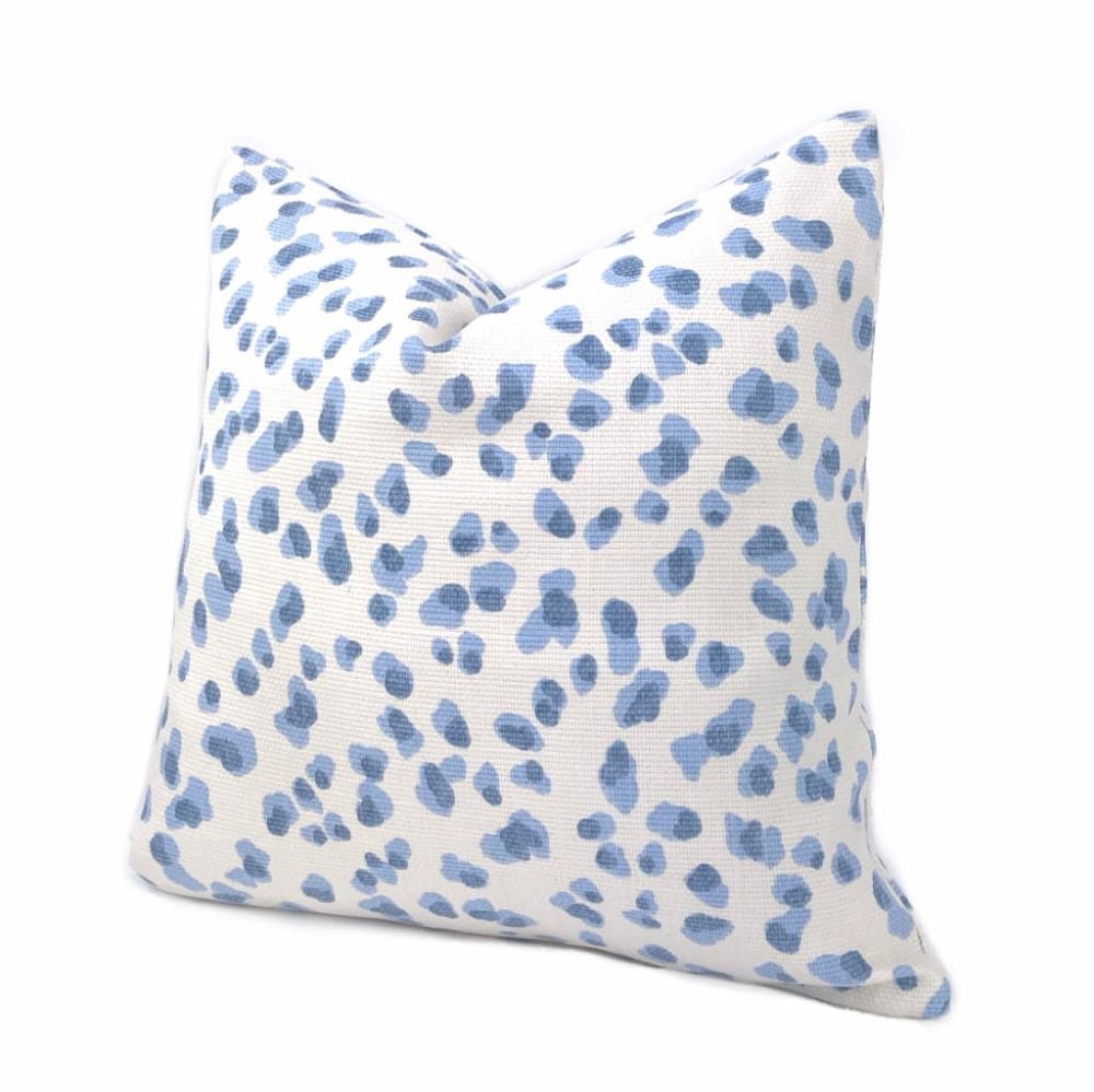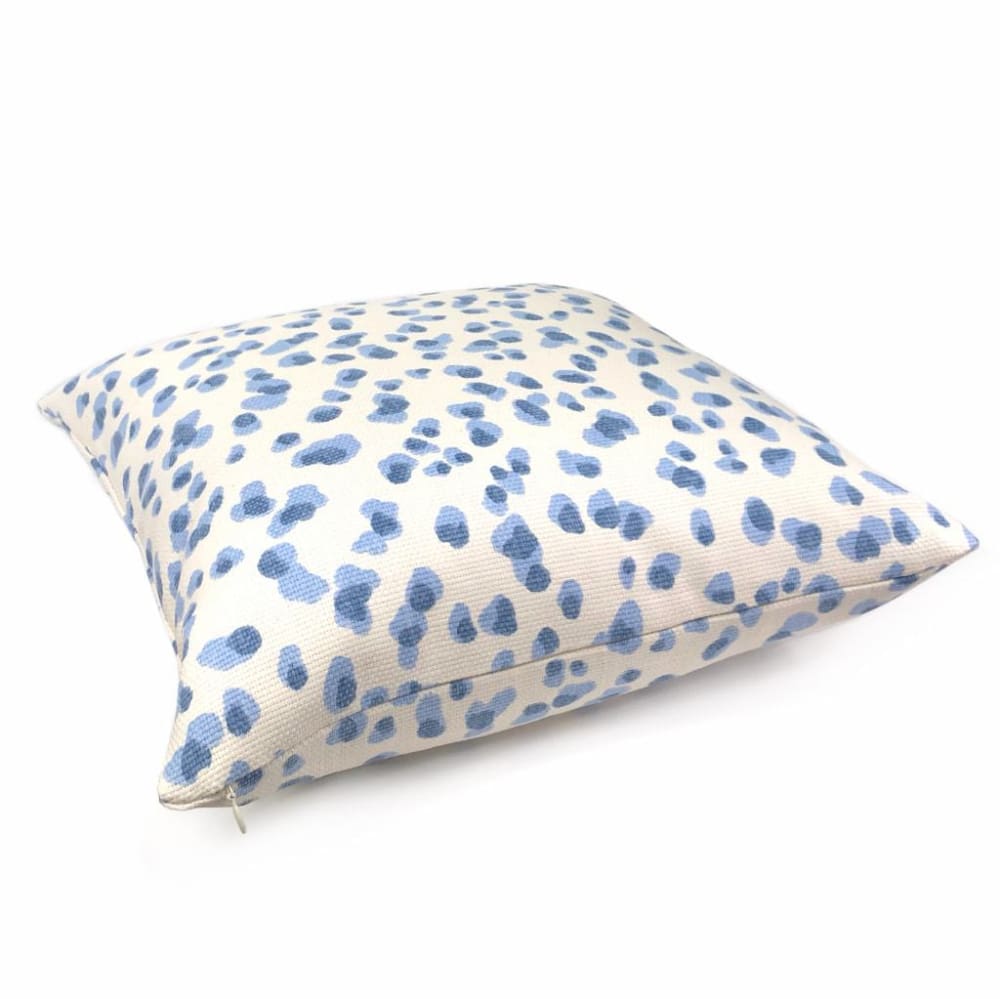 The Vega pillow cover features a fun and playful leopard design perfect for any contemporary decor! Watercolor-like dots of light and medium blue are printed on a creamy warm white background.