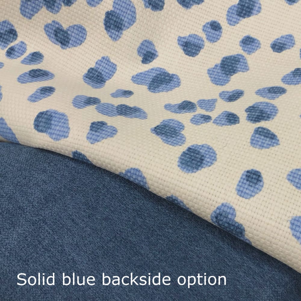 Offered in your choice of the pattern fabric on both sides or with a coordinating solid white or blue backside.