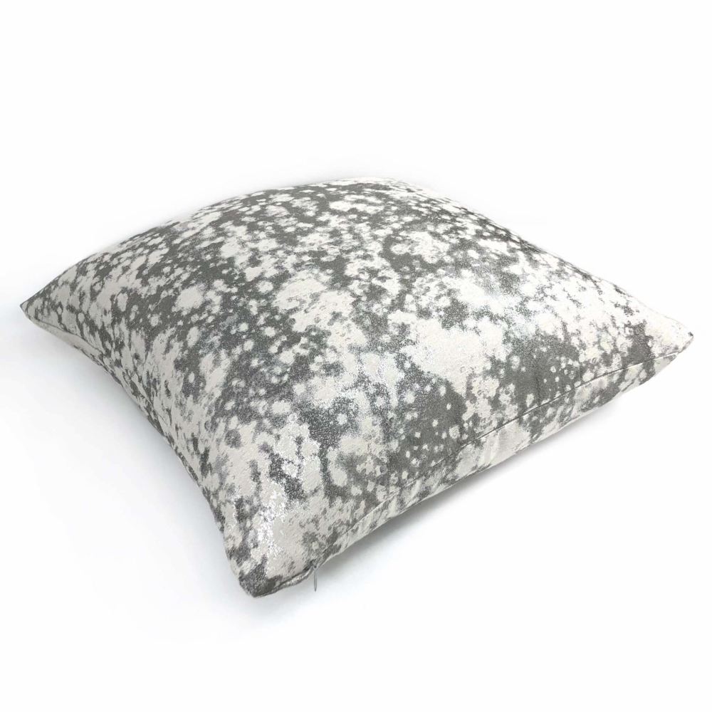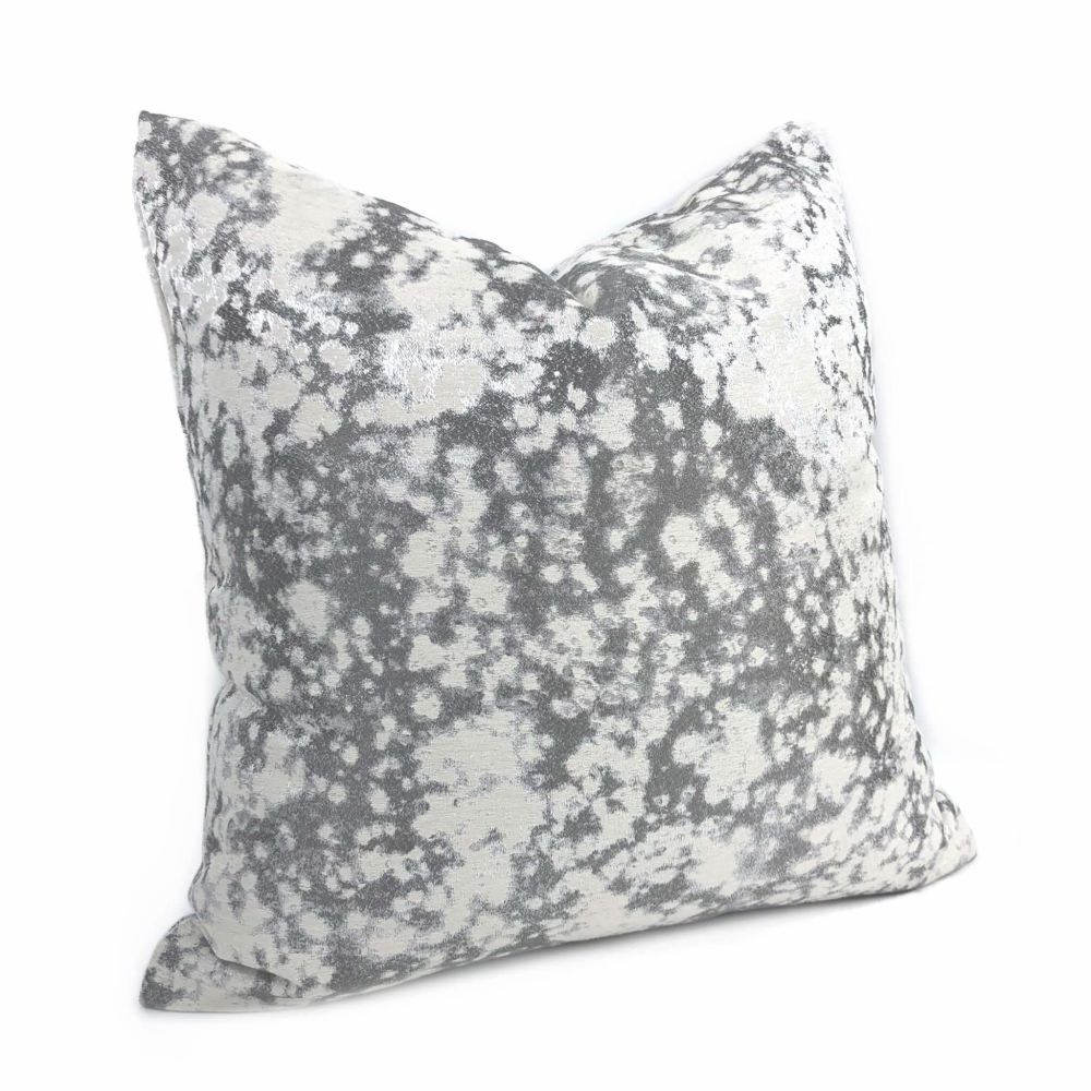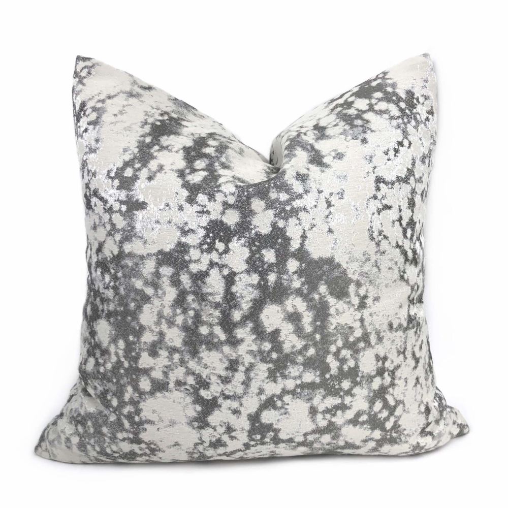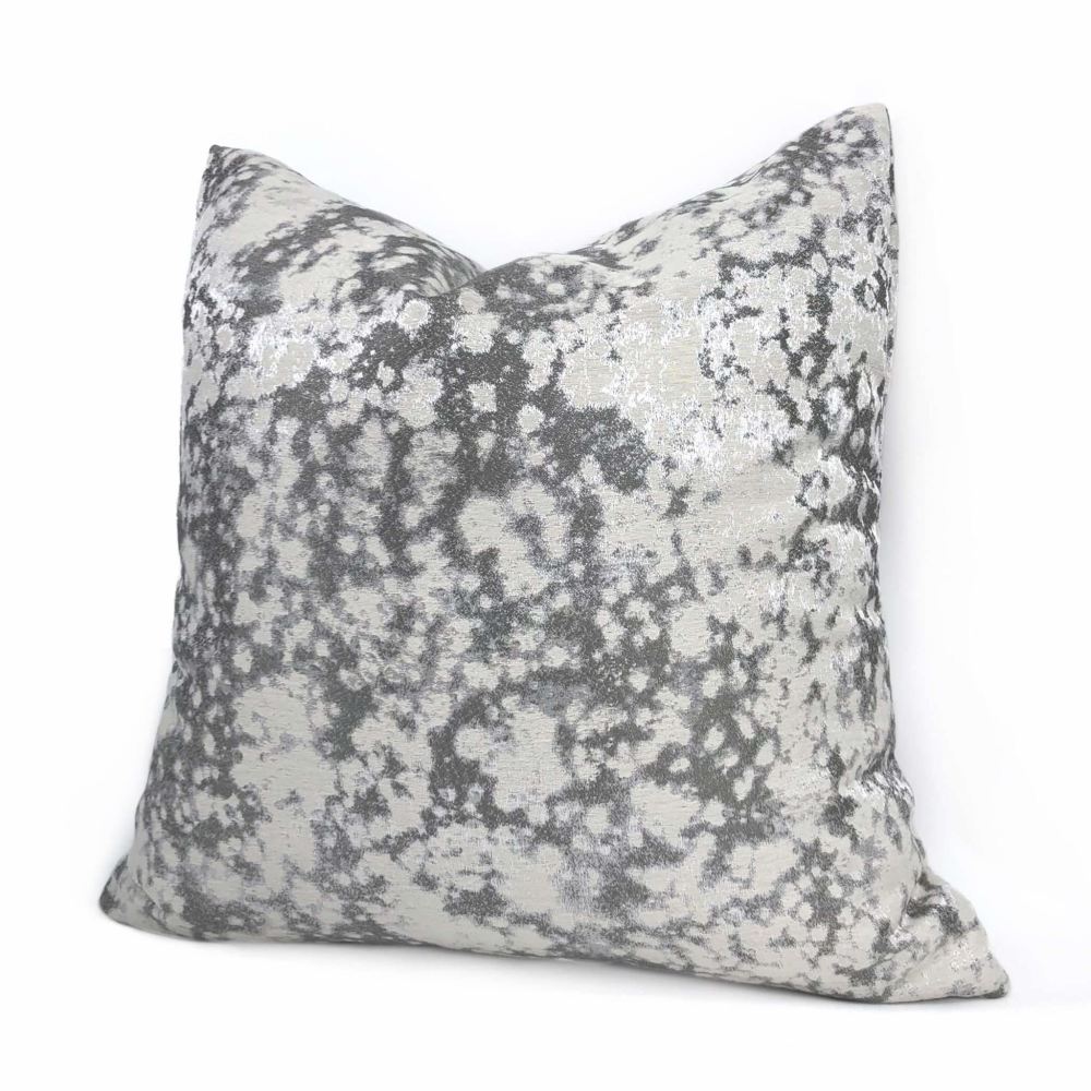 A shimmery abstract pattern woven in multiple shades of silver and gray make this pillow cover a wonderful additional to any modern, contemporary decor. Photographed on 17x17 cover (filled with 18x18 insert).