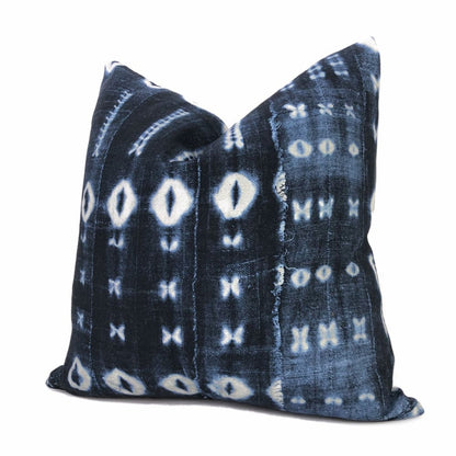 Zaza Navy Blue White African Mudcloth Style Pillow Cover