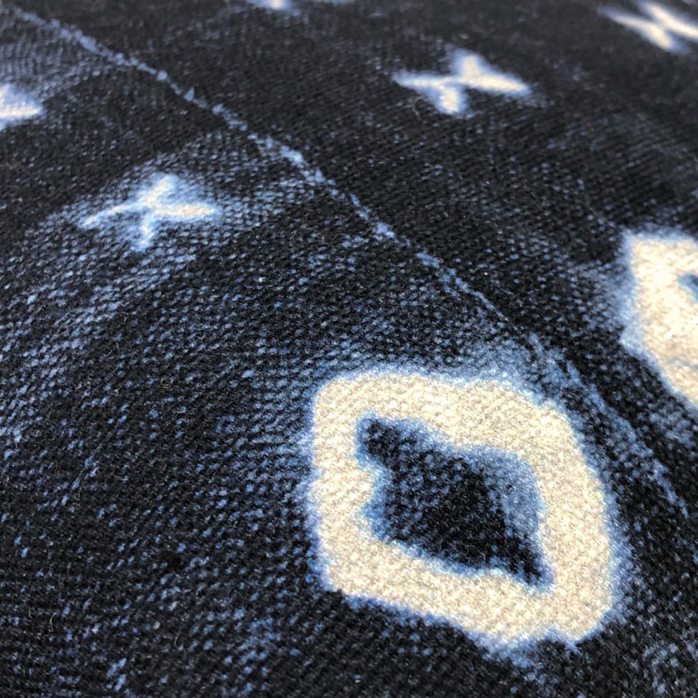 Zaza is an African Mudcloth style pillow cover printed in navy blue and white. Designer cotton upholstery pattern fabric was digitally printed in Spain with a soil and stain resistant finish.