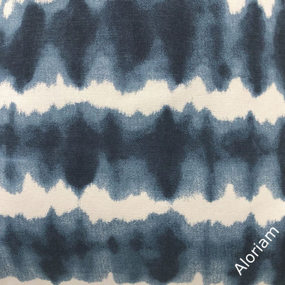 Zeno is a blue and white cotton print pillow cover with a contemporary tie dye striped design.
