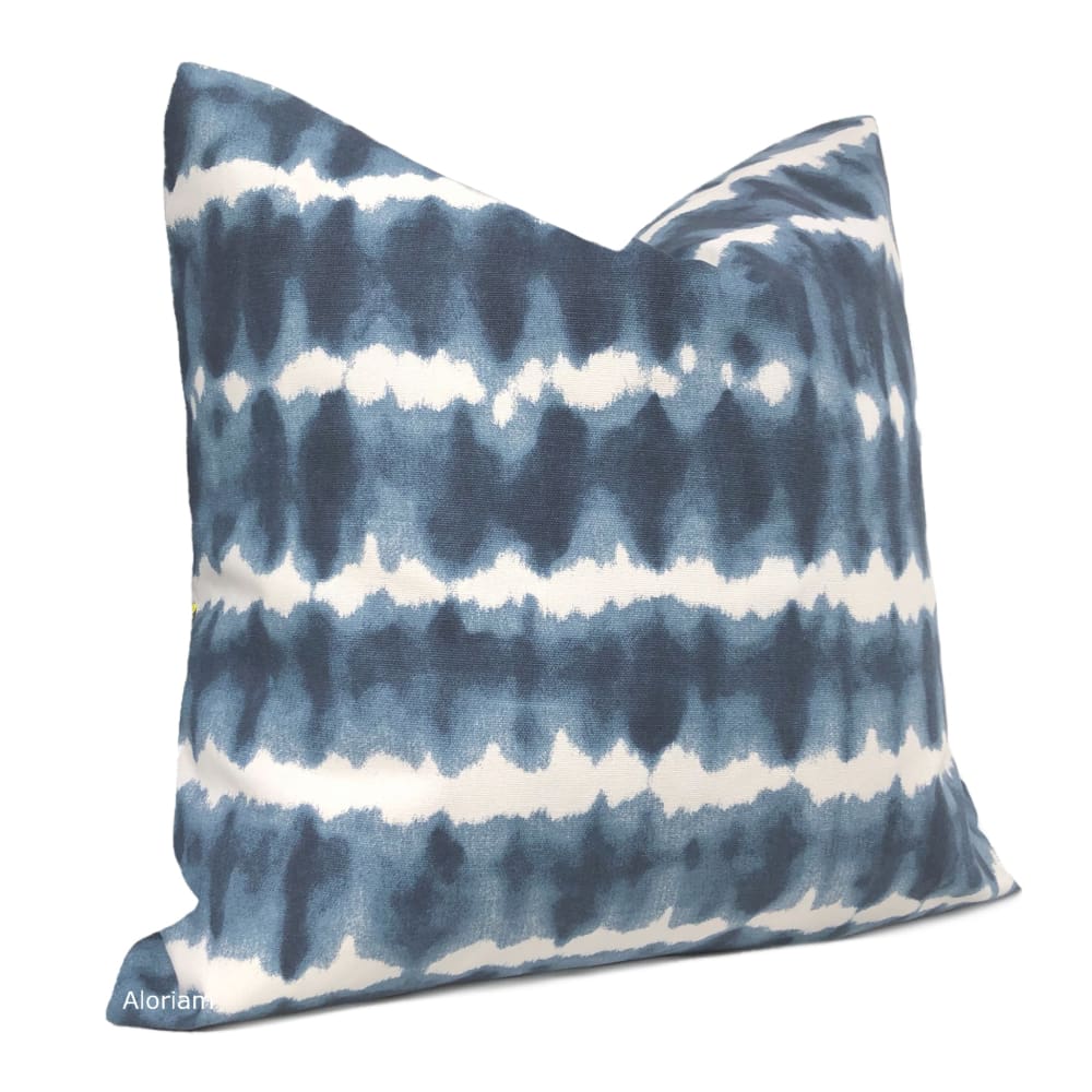 Zeno Navy Blue White Tie Dye Stripes Pillow Cover