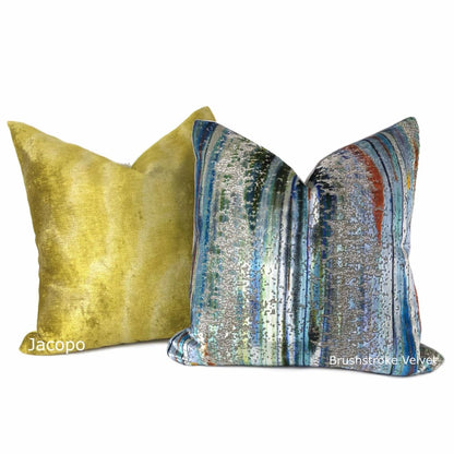 The Jacopo pillow cover features a large scale moire pattern digitally printed on velvet in a tonal wash of chartreuse. Woven by luxury fabric house Zinc Textile, this fabric is named after the renaissance artist Jacopo Tintoretto, and influenced by the artistic technique of chiaroscuro which uses contrasts between light and dark to create an illusion of volume. What a statement piece for any modern interior!