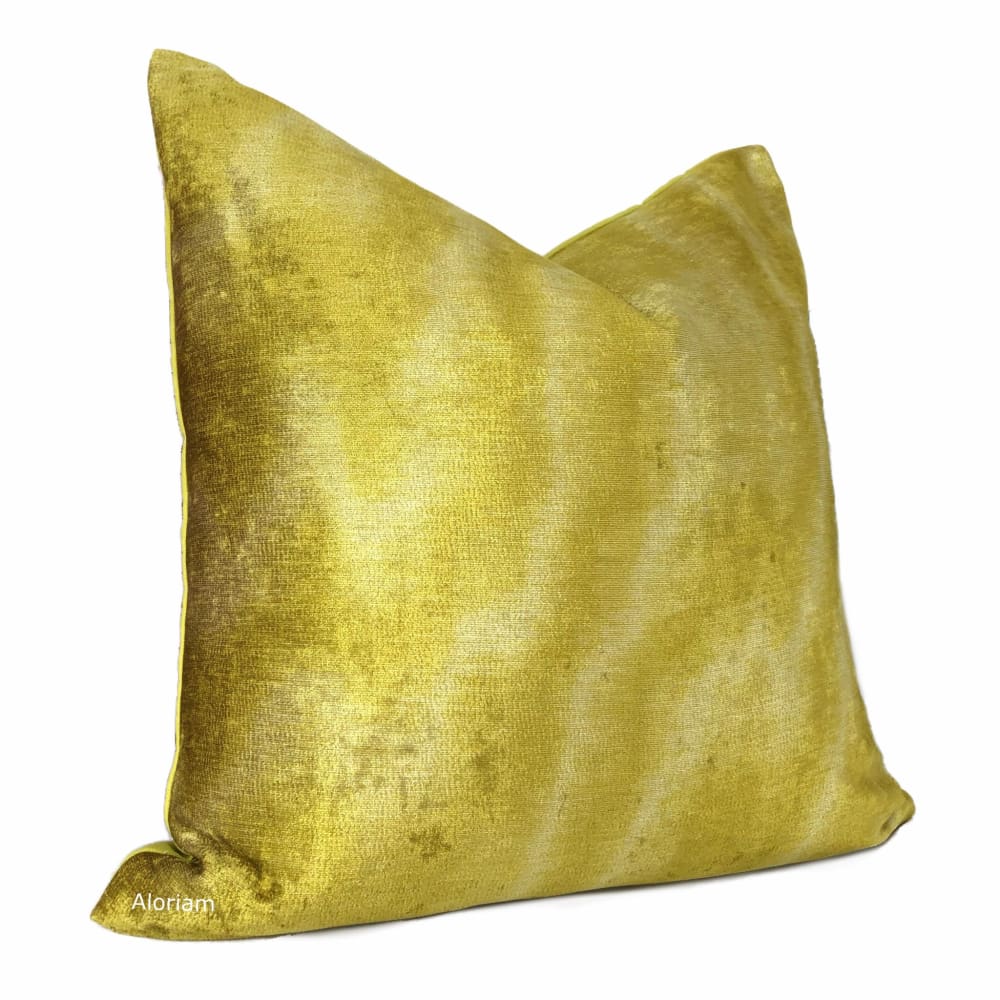 Zinc Textile Jacopo Chartreuse Tonal Moire Velvet Pillow Cover